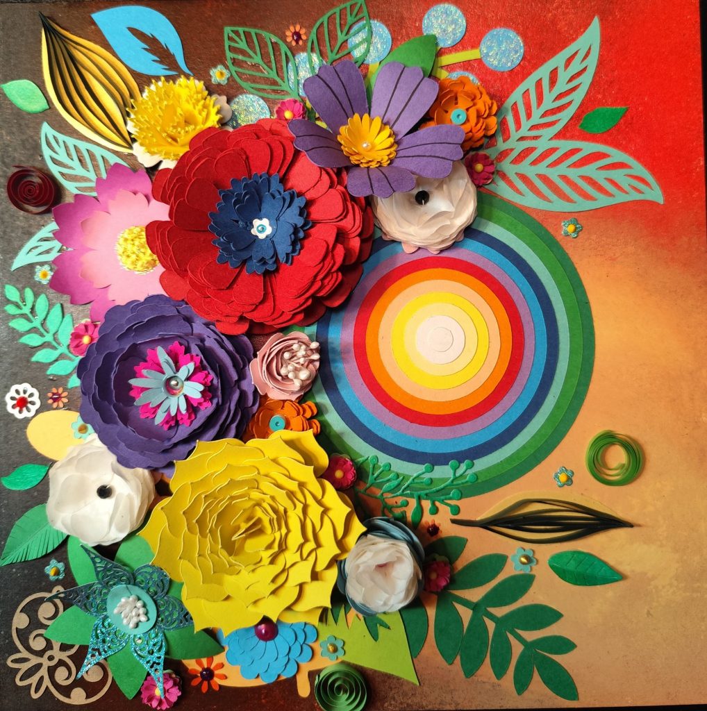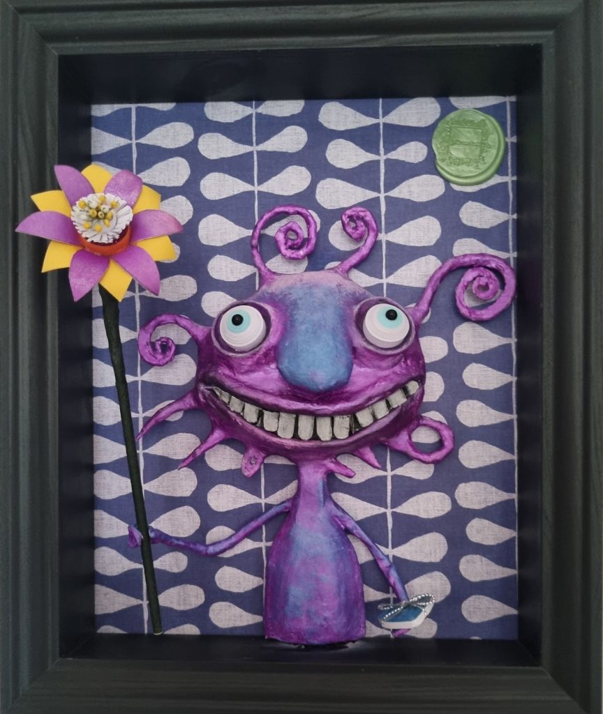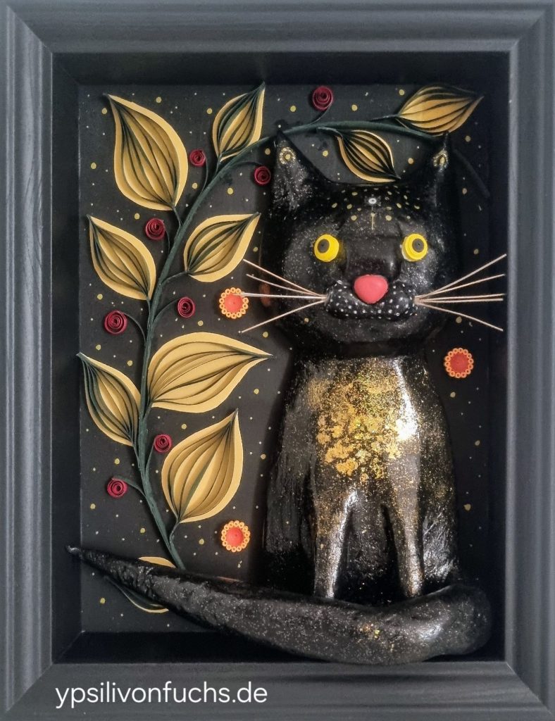 Hergestellt aus Blobfarbe, Papier, Pappe, Holzleim, Tinte, Vinylfolie, Möbelfolie, Draht, Quillingpapierstreifen, foamboard, Moosgummi