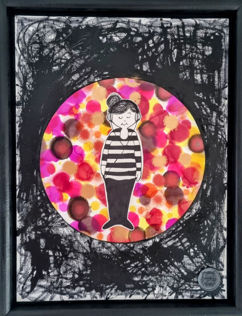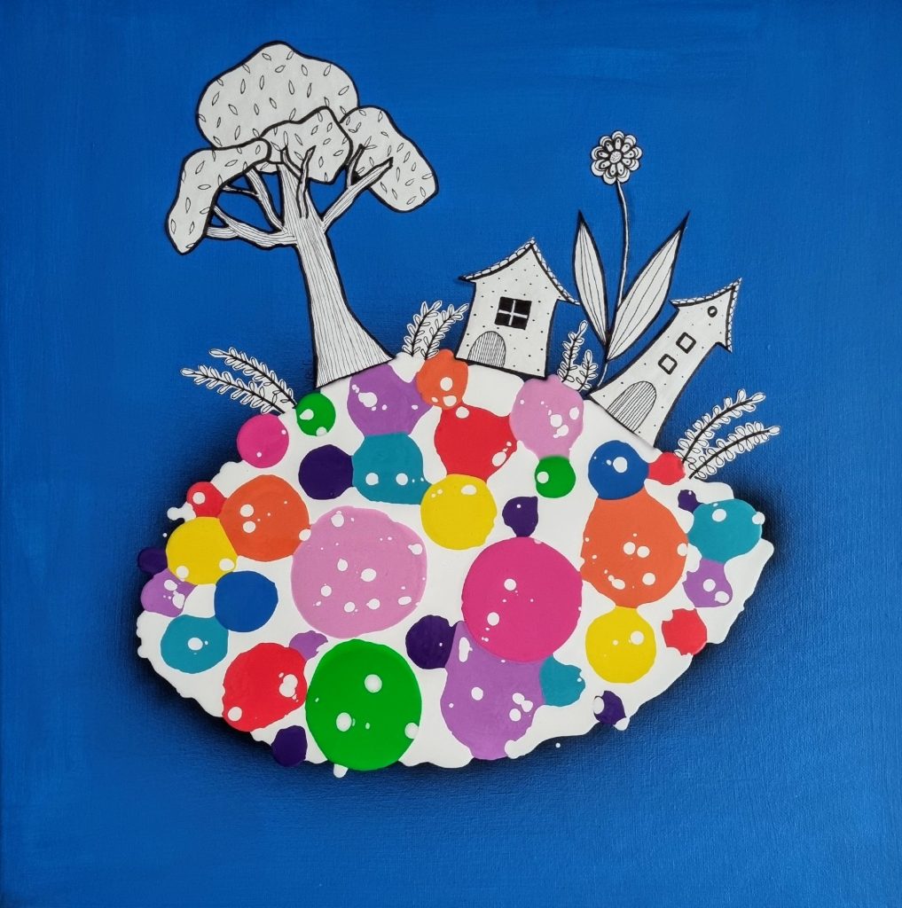 Hergestellt aus Acrylfarbe, Blobfarbe, Tinte, Aquarellpapier, Styrodur, Moosgummi
