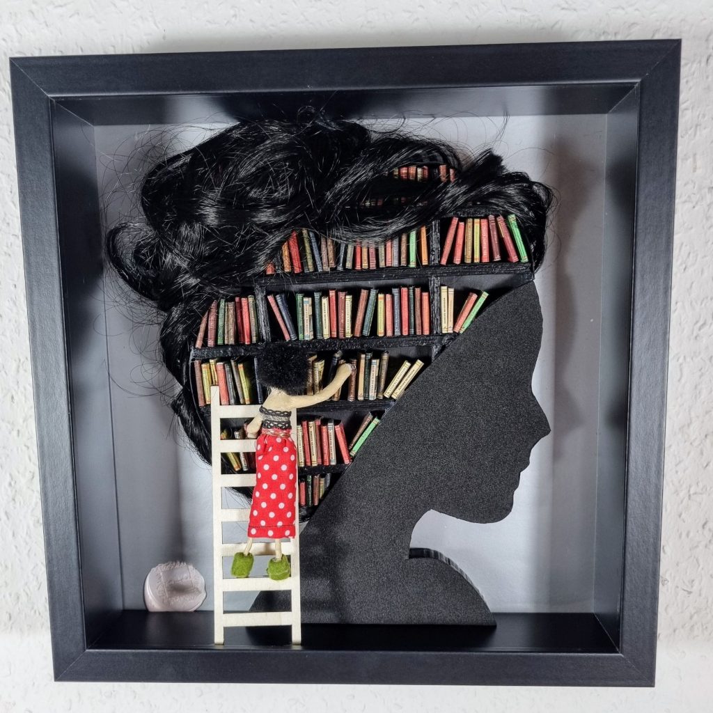 Hergestellt aus Papier, Gips, Perlen, Zahnstocher, Paverpol, Draht , Stoffe, Modeschmuck, Gesso, Acryl, Servietten, Aufkleber für Fingernägel, Dekokrone, Styropurkugeln, Bastelleim