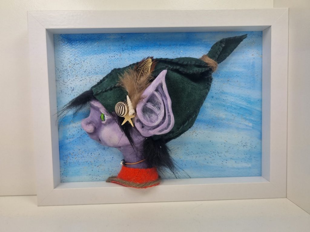 Hergestellt aus Pappmaché, Modelliermasse, Pappe, Filz, Deko Seestern, Muschel, Knopf, Lederband, Fell, Puppenhaare, Feder, Perle