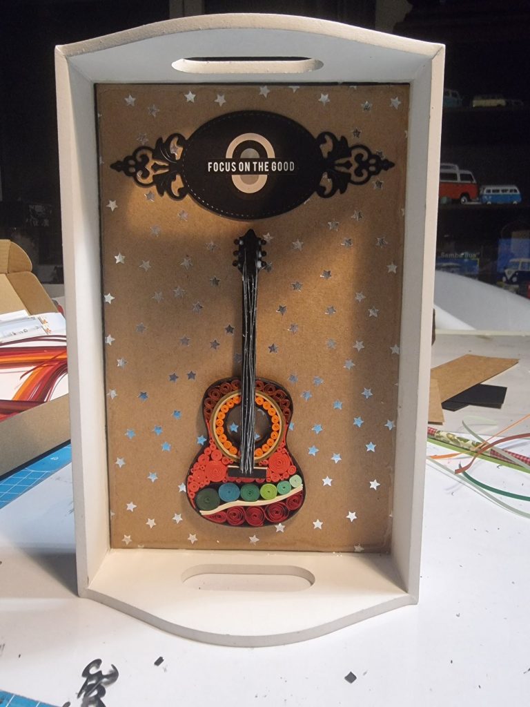 Hergestellt aus einem Tablett, Quillingstreifen, Draht, Nägel, Papier, Pappe