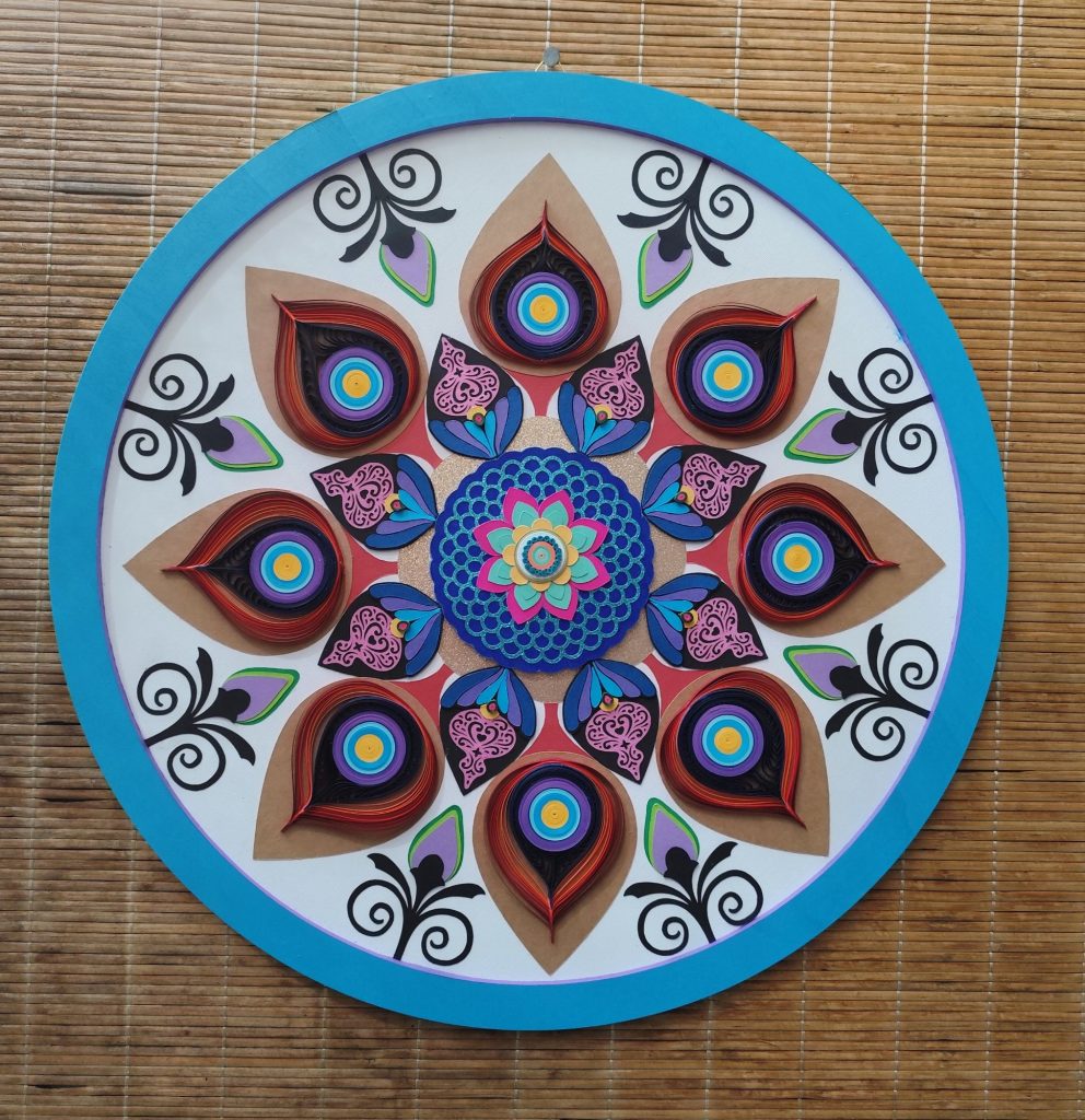 Hergestellt aus Quillingpapierstreifen, Holzleim und Papier